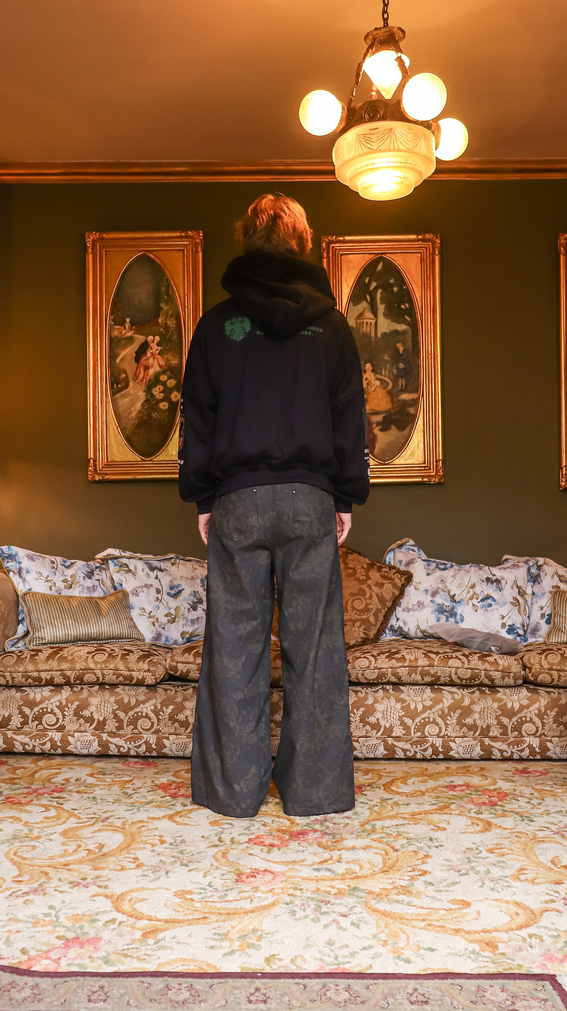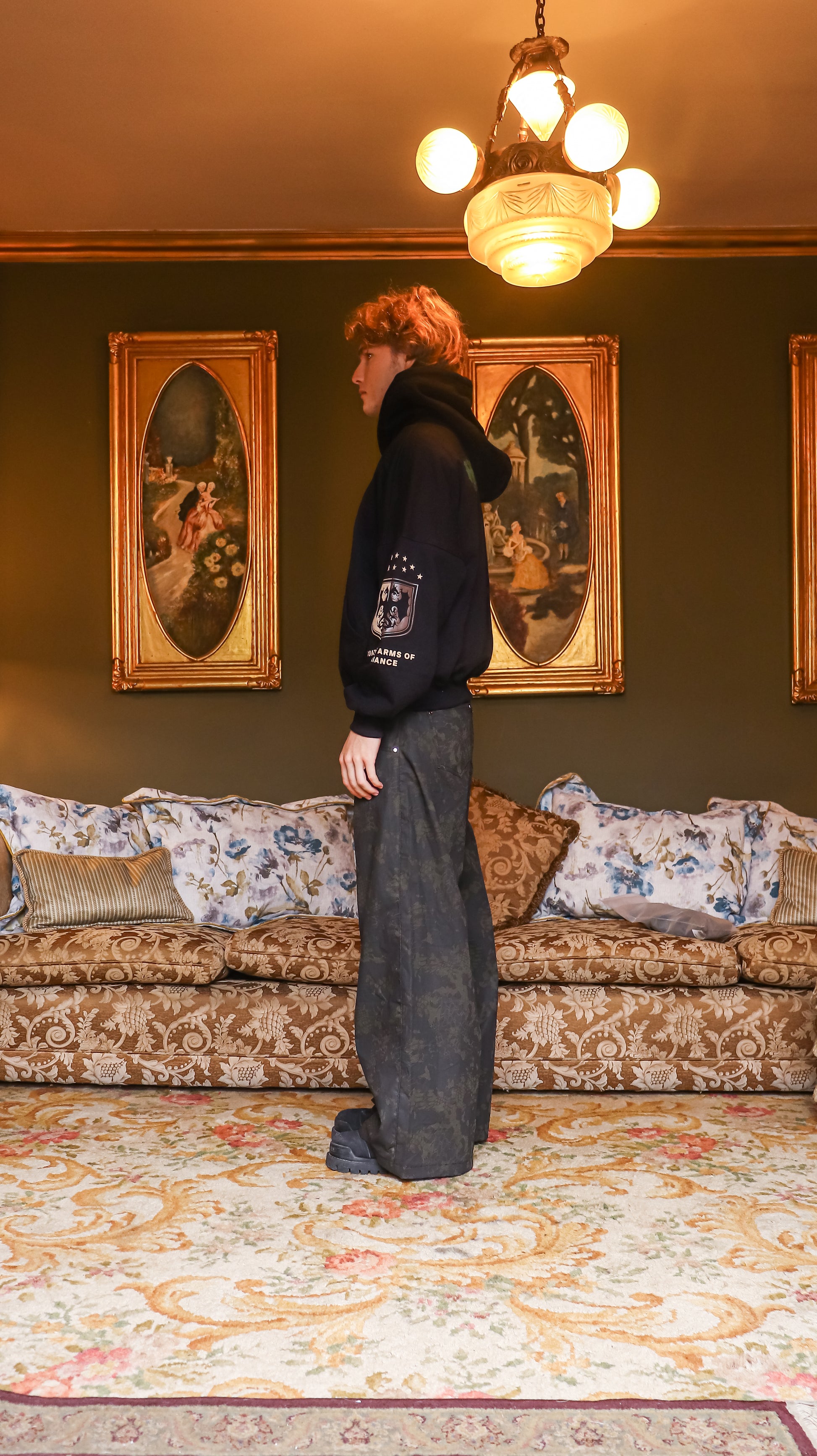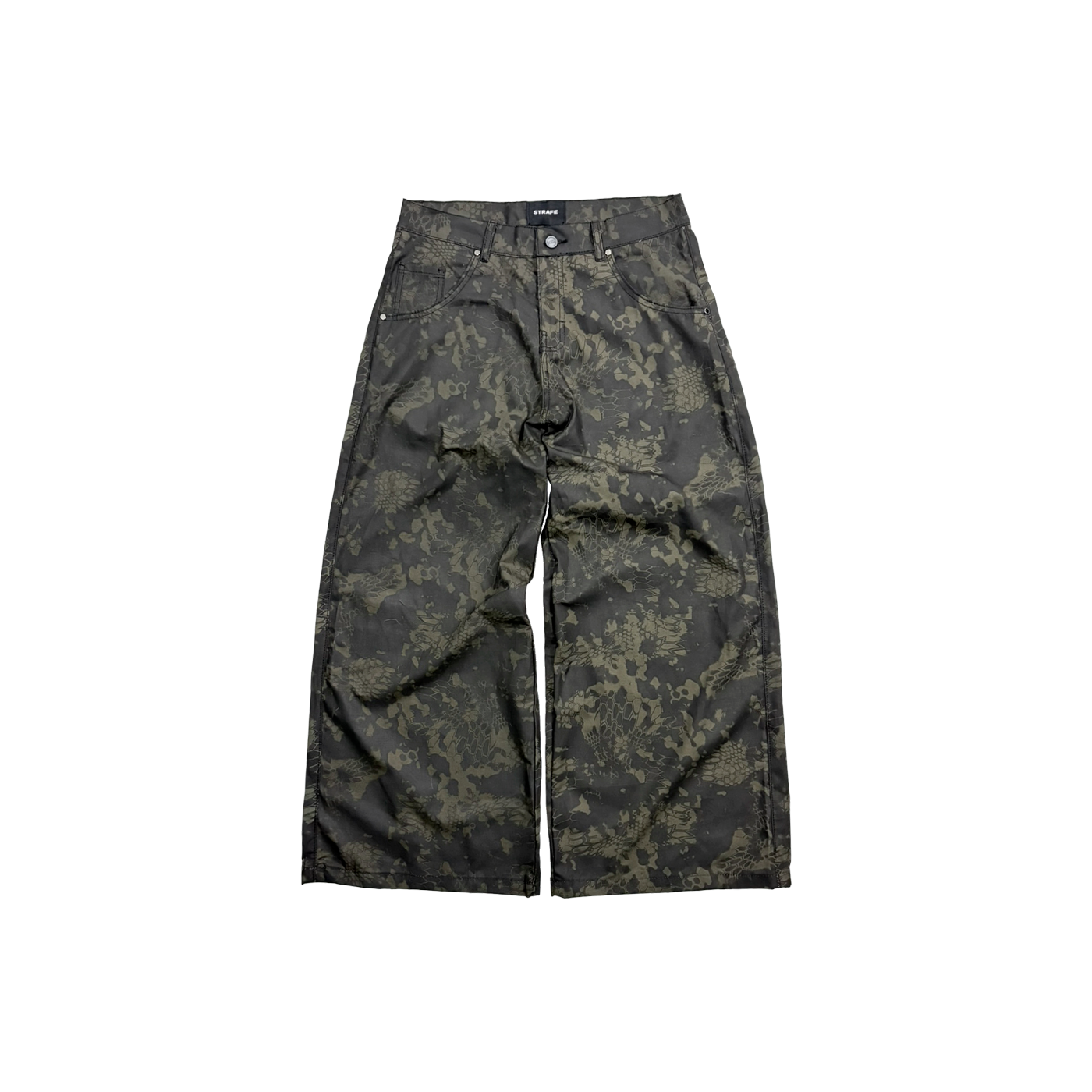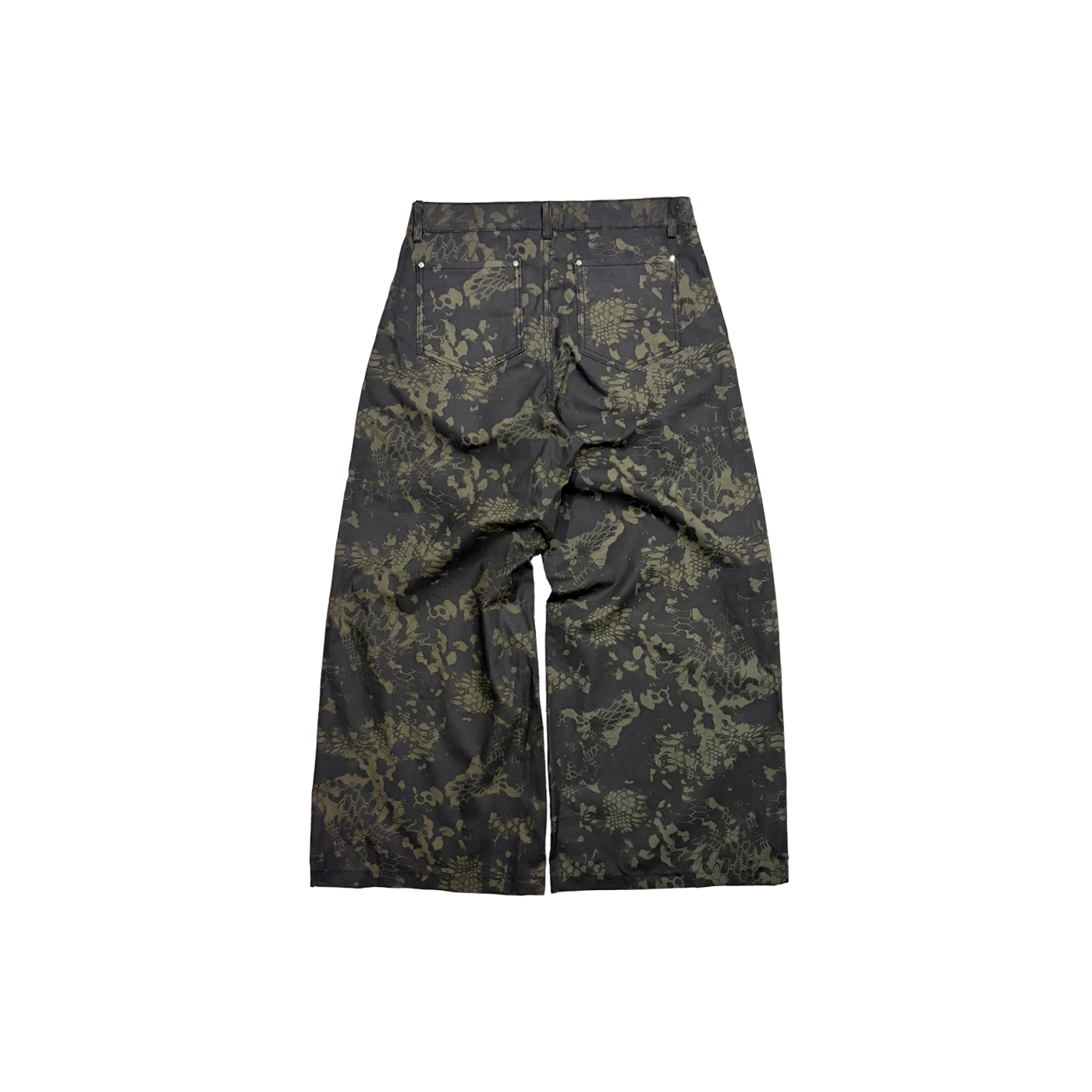 Pantalon de corte super baggy confeccionado en algodón ripstop, un tejido resistente con estructura cuadriculada que ayuda a conservar su volumen y forma.