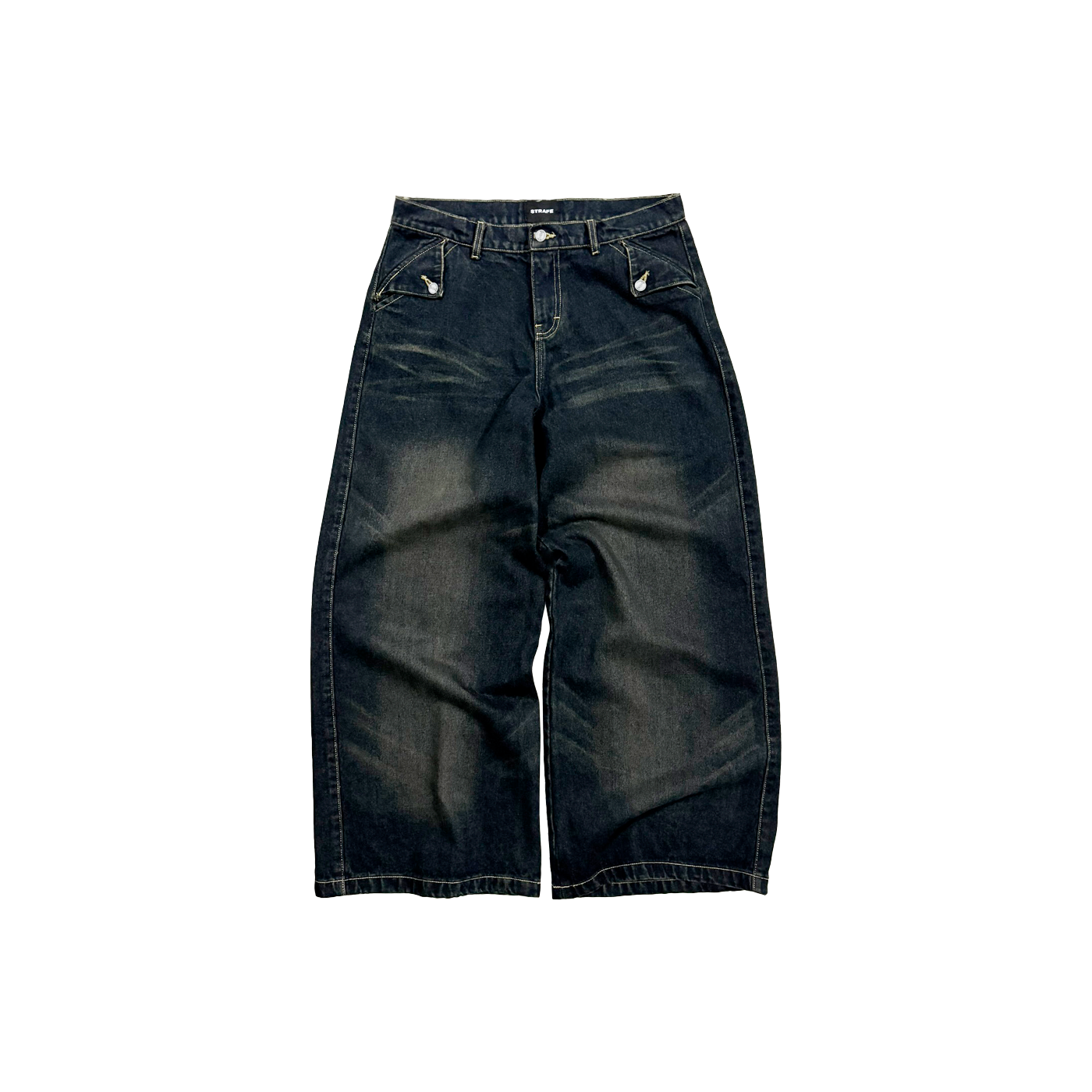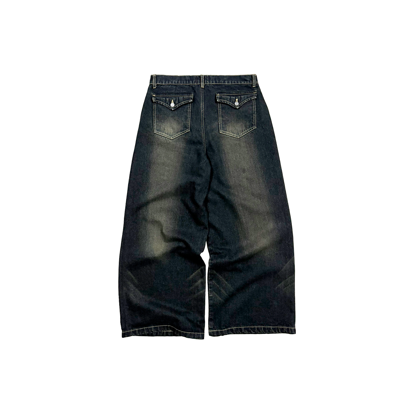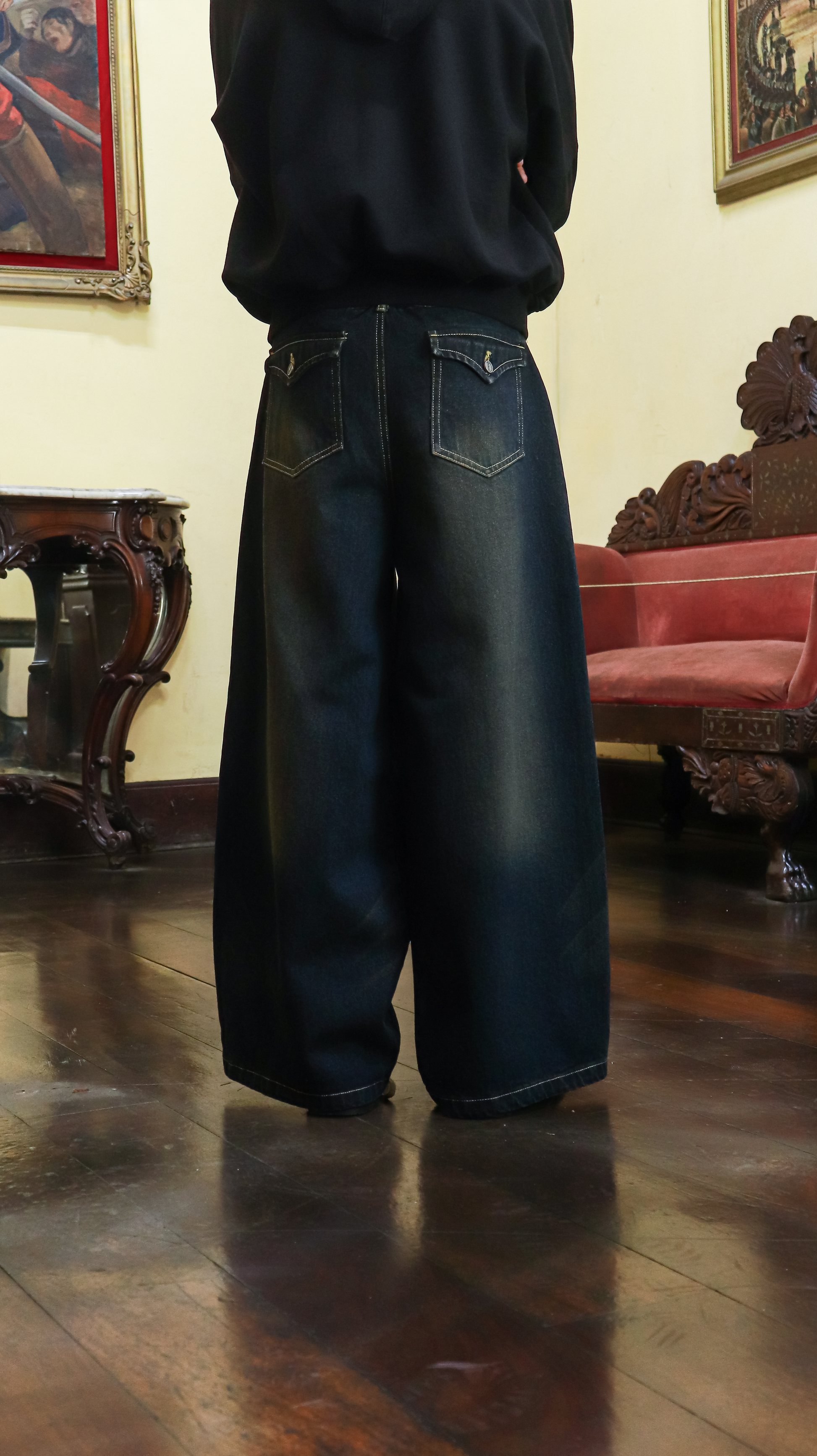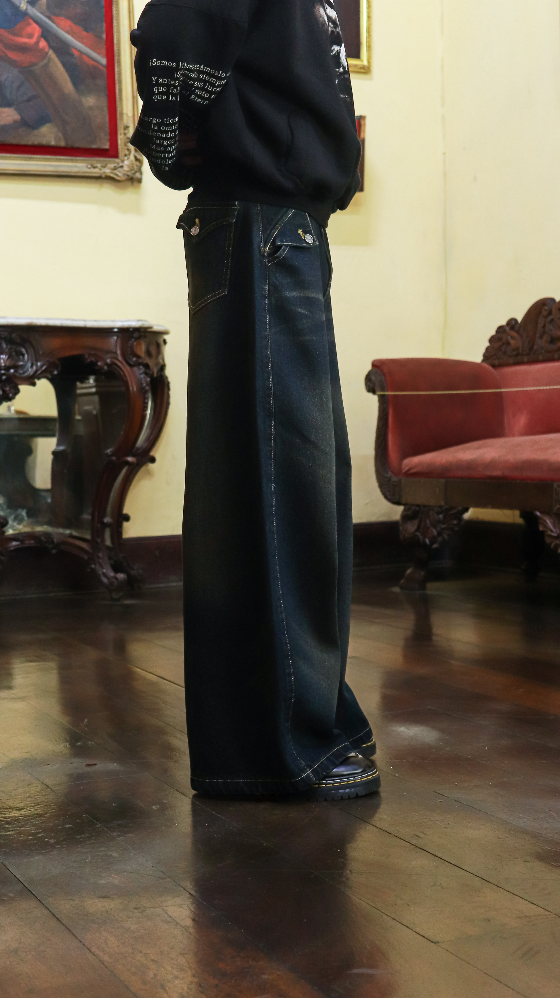 Este pantalón está confeccionado con denim de algodón 100% de 15 oz, un tejido pesado y robusto que evoca la rudeza del campo de batalla. Su fit súper baggy garantiza comodidad y presencia, mientras que las tapas en los bolsillos delanteros y posteriores ofrecen mayor seguridad sin comprometer el estilo.