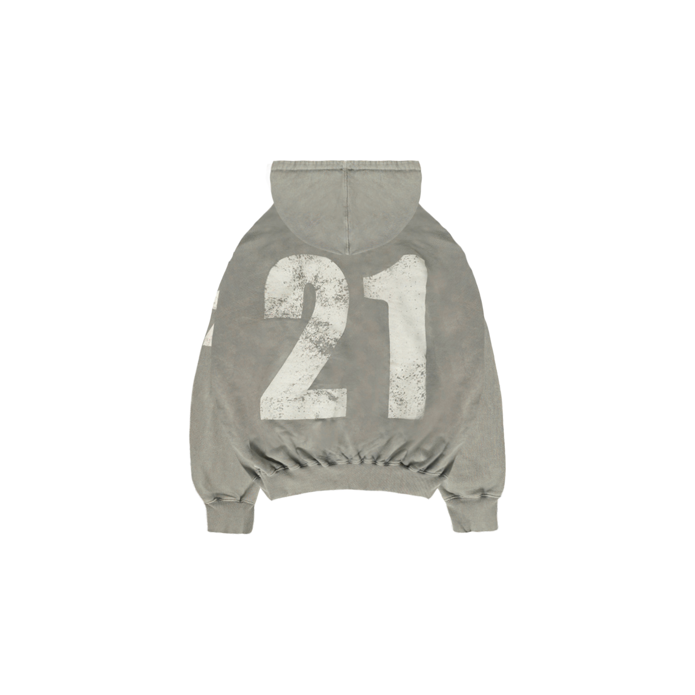 Cada unidad ha sido intervenida manualmente mediante un proceso artesanal con compresora tipo spray, logrando un efecto de difuminado, desgaste y acabado envejecido. Este tratamiento se complementa con un proceso industrial en lavandería: teñido, desgastado y prelavado, lo que garantiza una textura única y un tono irregular en cada re-stock, ninguno es igual al otro.