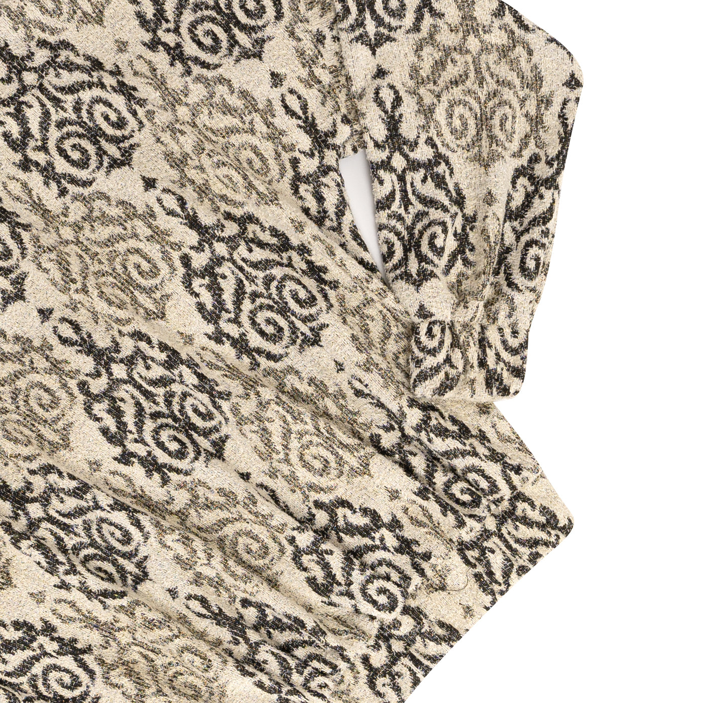 Tiene un patrón de tribales por toda la prenda, tiene detalles de hilos dorados "brillantes" solo en partes estratégicas que hacen que esta pieza resalte aun mas.